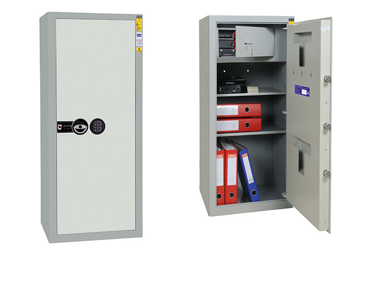 Отличительными чертами офисных и мебельных сейфов серии M – Modern стали их практическая надежность и стильный дизайн, способный гармонично вписаться в любой интерьер. Толщина металла корпуса сейфа в 3 и 4 мм удачно дополнена прочным ригельным механизмом, а также двумя типами сертифицированных замков – ключевым замком STUV или кодовым электронным M-LOCKS. На внутренней стороне двери сейфа предусмотрены удобные отделения для мелких предметов и документов.