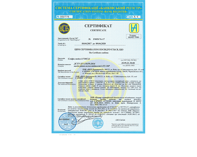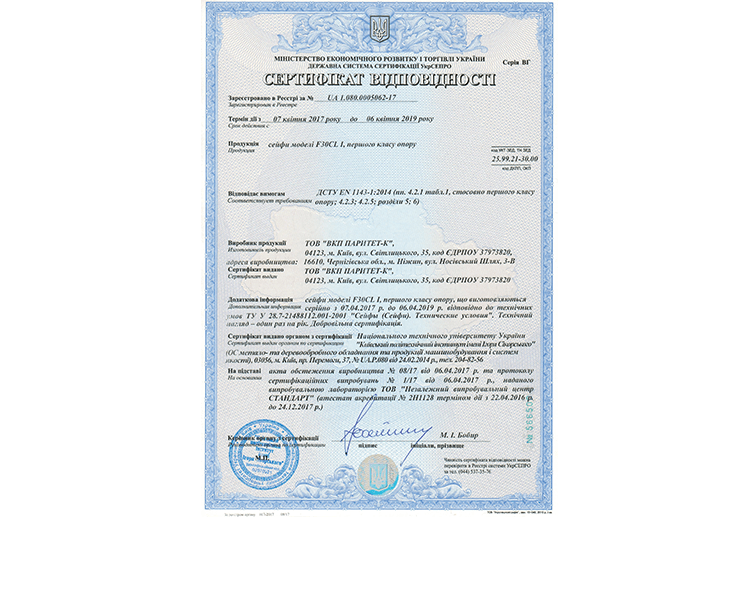 • Взломостойкость: 1 класс по ДСТУ EN 1143-1:2014
