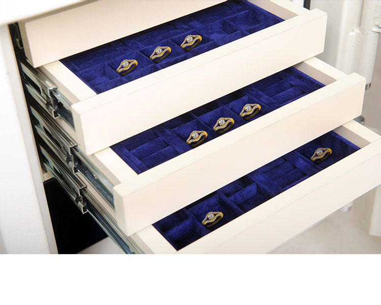 Jewelry – модель серии CL, предназначенная для хранения ювелирных украшений и драгоценностей. Сейф укомплектован выдвижными ящиками, удобно вмещающими в себя различные ювелирные украшения.