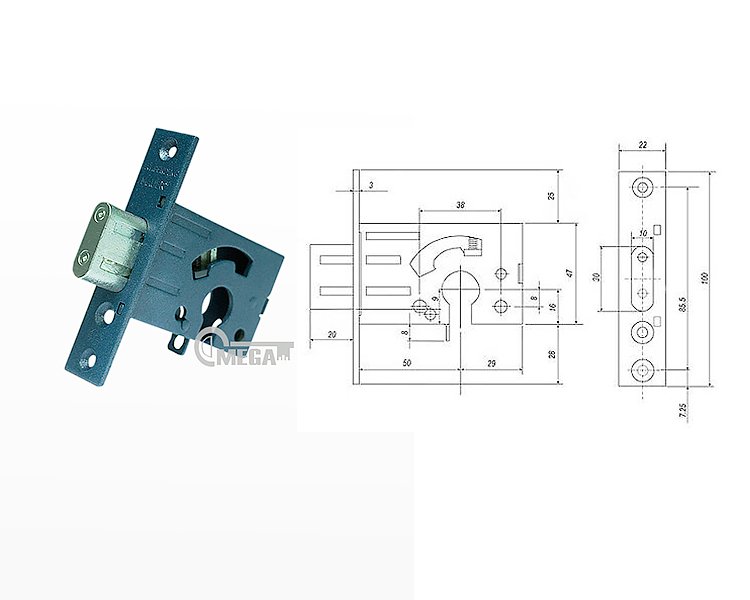 Врезной механизм, дополнительный. Устанавливается на металлические и деревянные двери, металлические шкафы и сейфы.