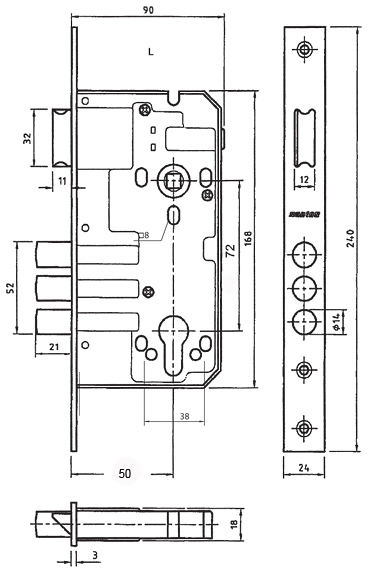 Замок врезной под цилиндровый механизм. Устанавливается на входные металлические двери и на деревянные двери.