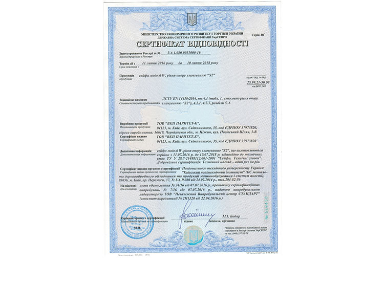 Встраиваемый взломостойкий сейф сертифицирован в Европейской лаборатории ECB-S и имеет сертификат класса S2 по стандарту EN 14450.