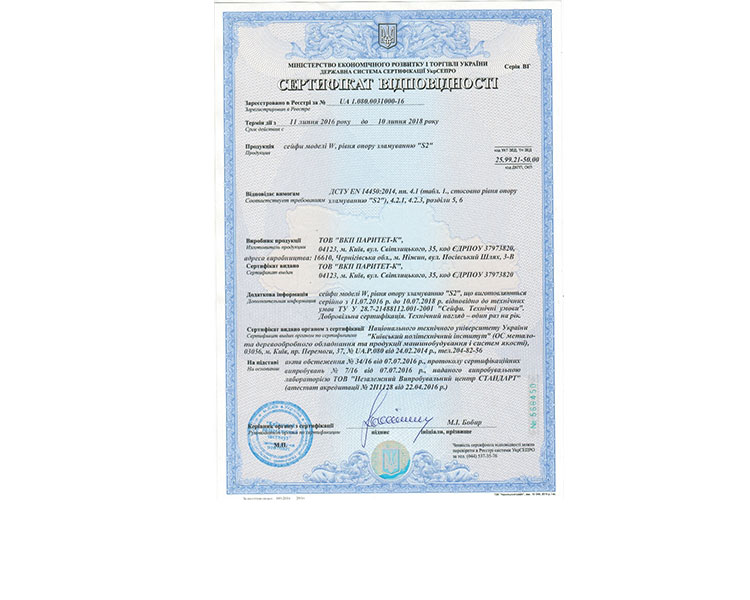 • Взломостойкость: класс S2 по EN 14450, класс S2 по ДСТУ EN 14450