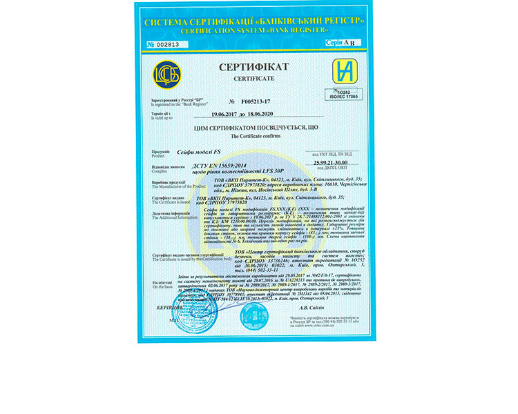• Сейфы II класс взломостойкости (Европейская сертификация)