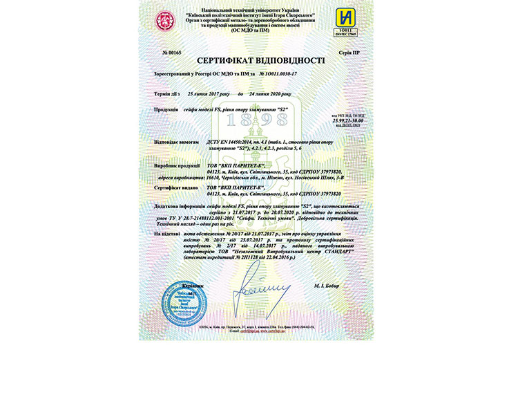 • Взломостойкость: класс S2 по ДСТУ EN 14450