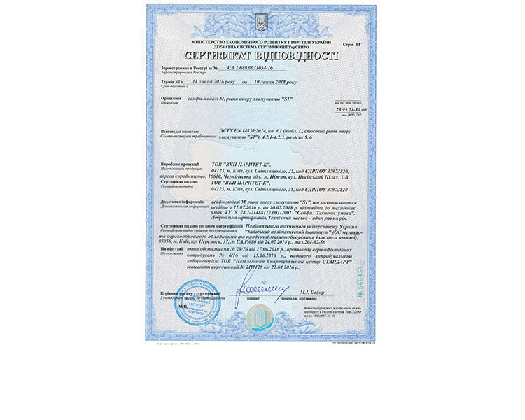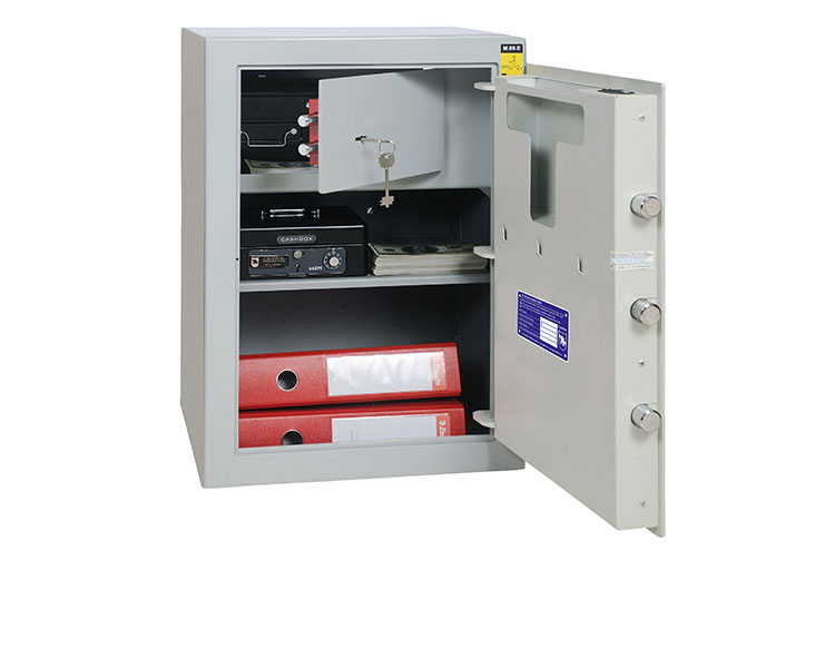 Отличительными чертами офисных и мебельных сейфов серии M – Modern стали их практическая надежность и стильный дизайн, способный гармонично вписаться в любой интерьер. Толщина металла корпуса сейфа в 3 и 4 мм удачно дополнена прочным ригельным механизмом, а также двумя типами сертифицированных замков – ключевым замком STUV или кодовым электронным M-LOCKS. На внутренней стороне двери сейфа предусмотрены удобные отделения для мелких предметов и документов.