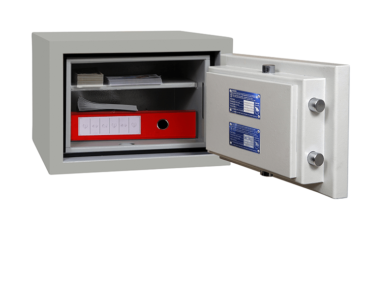 Корпус и двери огне-взломостойкого сейфа заливаются высокопрочным бетоном, а вcтроенная ригельная система отличается трехсторонней защитой, представленной кодовым замком M-LOCKS или ключевым STUV и немецкой термолентой BASF