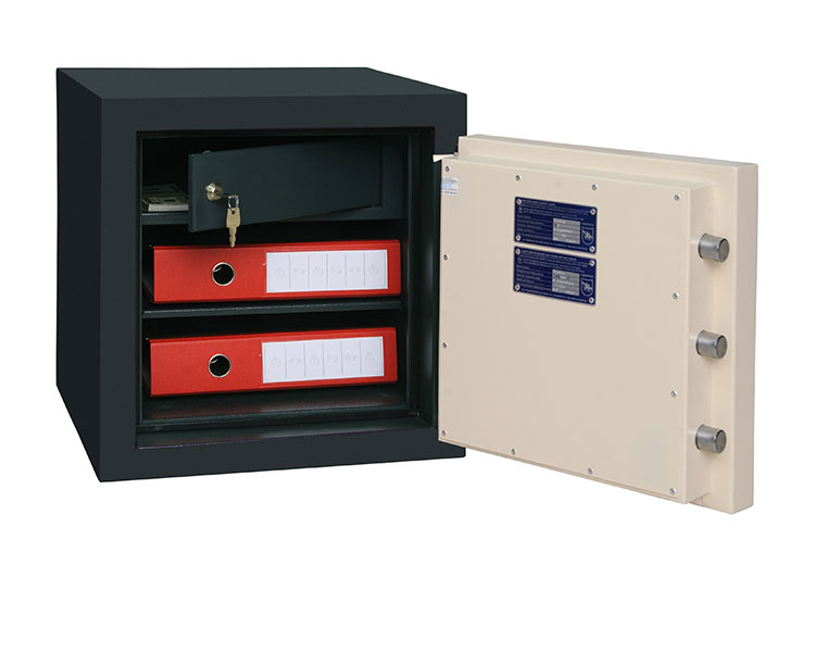 Огнестойкие сейфы серии FS отличный выбор для зданий, в которых есть риск возникновения пожара. Благодаря специальному наполнению двери и корпуса такая конструкция способна в течение получаса защищать от воздействия высоких температур даже самые хрупкие вещи.