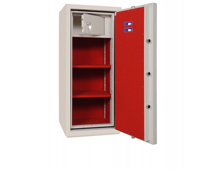 Ключевая особенность серии СL II – наполнение стенок фортификационным бетоном, что позволяет во много раз увеличить степень безопасности и повысить уровень защищенности от возможного взлома, и четырехсторонняя ригельная система.