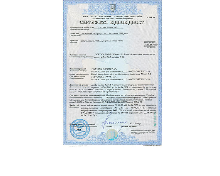 Взломостойкий сейф 1 класса F.30.CLI.30.К