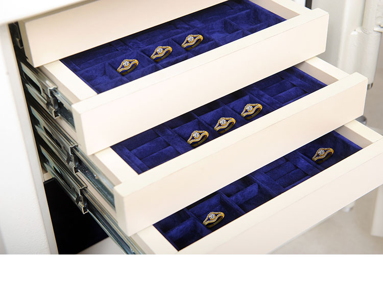 Jewelry – модель серии CL, предназначенная для хранения ювелирных украшений и драгоценностей. Сейф укомплектован выдвижными ящиками, удобно вмещающими в себя различные ювелирные украшения.