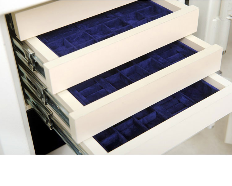 Jewelry – модель серии CL, предназначенная для хранения ювелирных украшений и драгоценностей. Сейф укомплектован выдвижными ящиками, удобно вмещающими в себя различные ювелирные украшения.