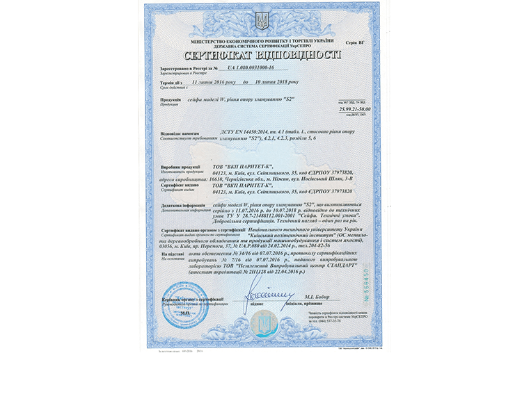 Встраиваемый взломостойкий сейф сертифицирован в Европейской лаборатории ECB-S и имеет сертификат класса S2 по стандарту EN 14450.