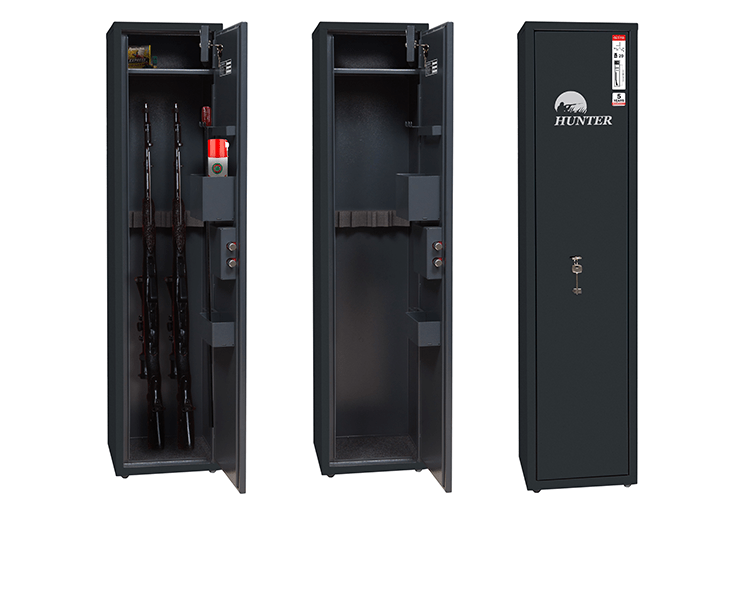 Сейф для хранения оружия GLT.110.K HUNTER предназначен для хранения оружия в количестве 4 единицы длиной до 960 мм. Сейф предназначен для хранения таких видов оружия: травматическое оружие, гладкоствольное оружие.
