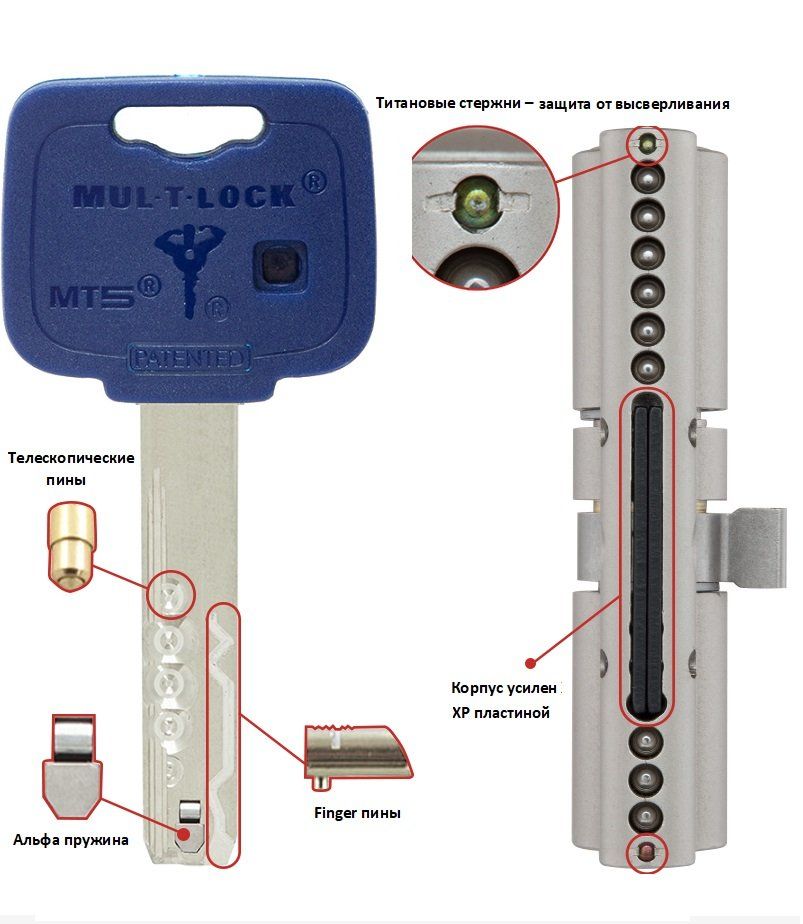Цилиндр MUL-T-LOCK MT5+ (ключ-ключ)