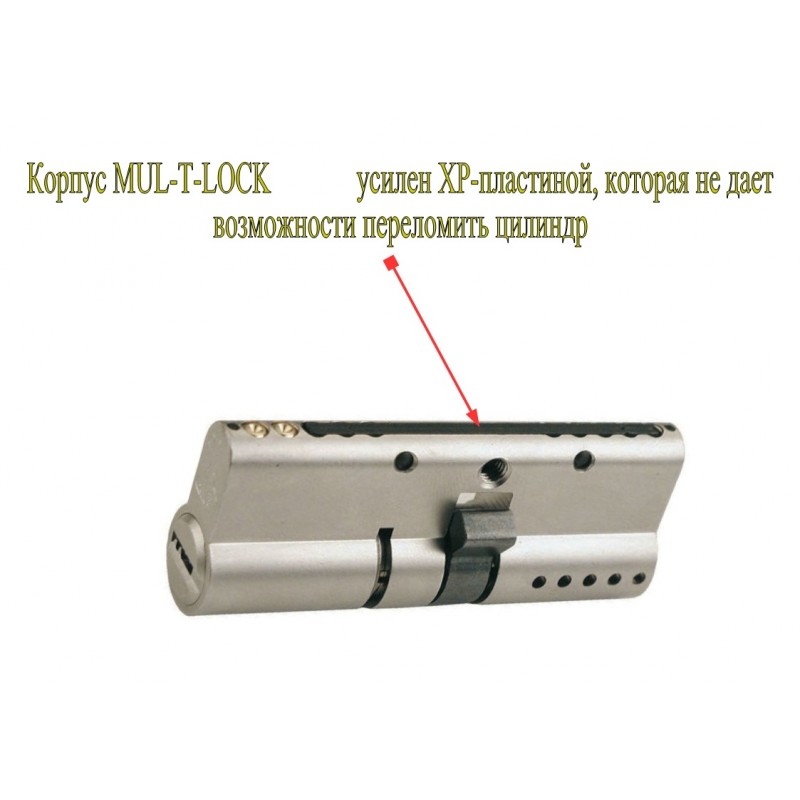 • Защита от перелома цилиндра пополам (плата ХР) — мощная пластина из закаленной стали укрепляет цилиндр и защищает от перелома пополам. Для дополнительной защиты рекомендуется применение защиты цилиндра — Броненакладка MUL-T-LOCK SL-3;