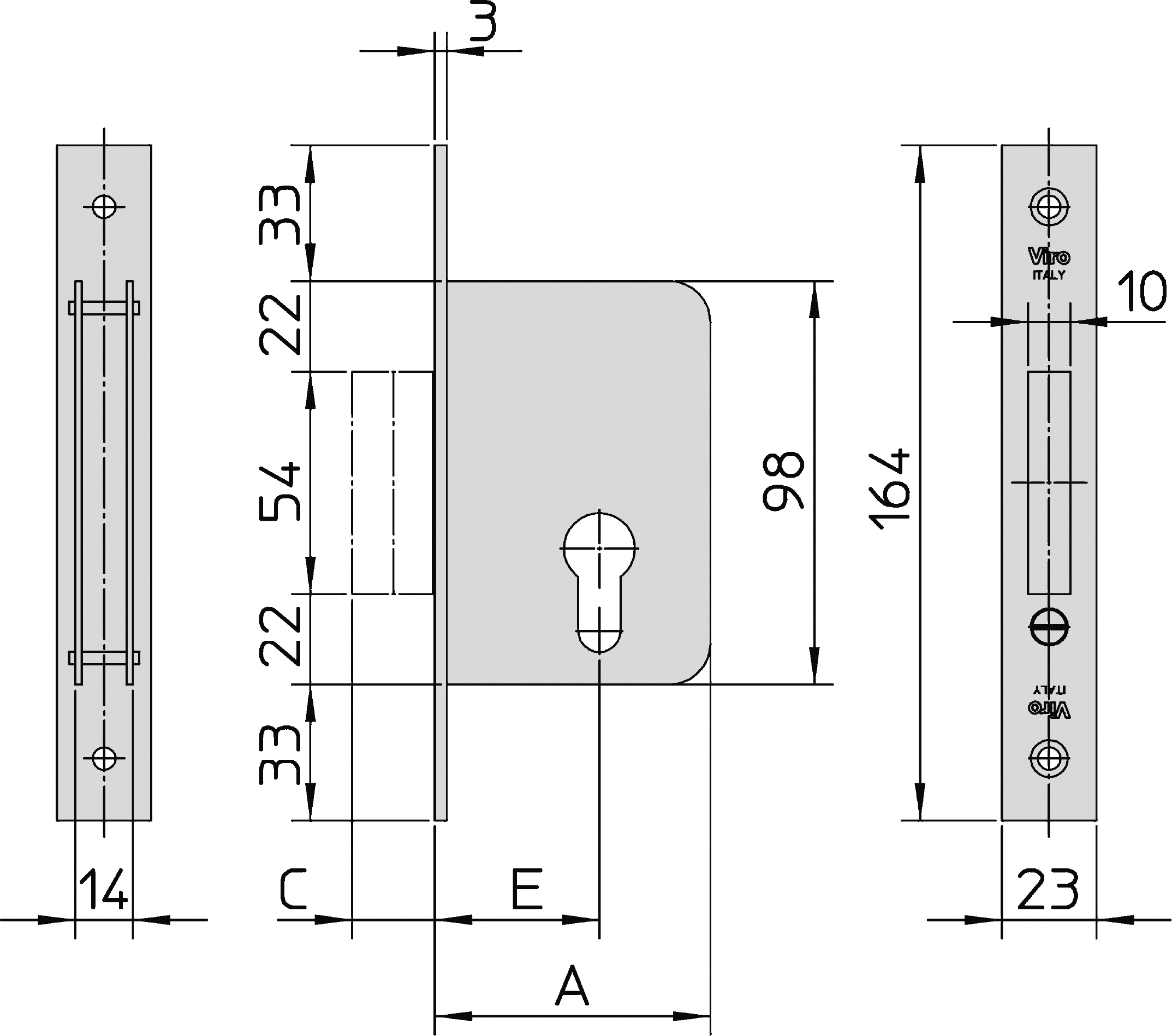 • Лицевая планка: ширина 23 мм, длина 164 мм, толщина 3 мм;