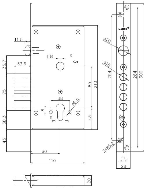 - Корпус замка: ширина 110 мм, высота 210 мм, толщина 20 мм;