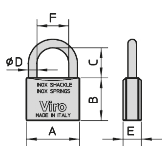 Артикул № | Размеры корпуса, мм A x В x E | Зазор дужки, мм С — F | Диаметр дужки, мм D |